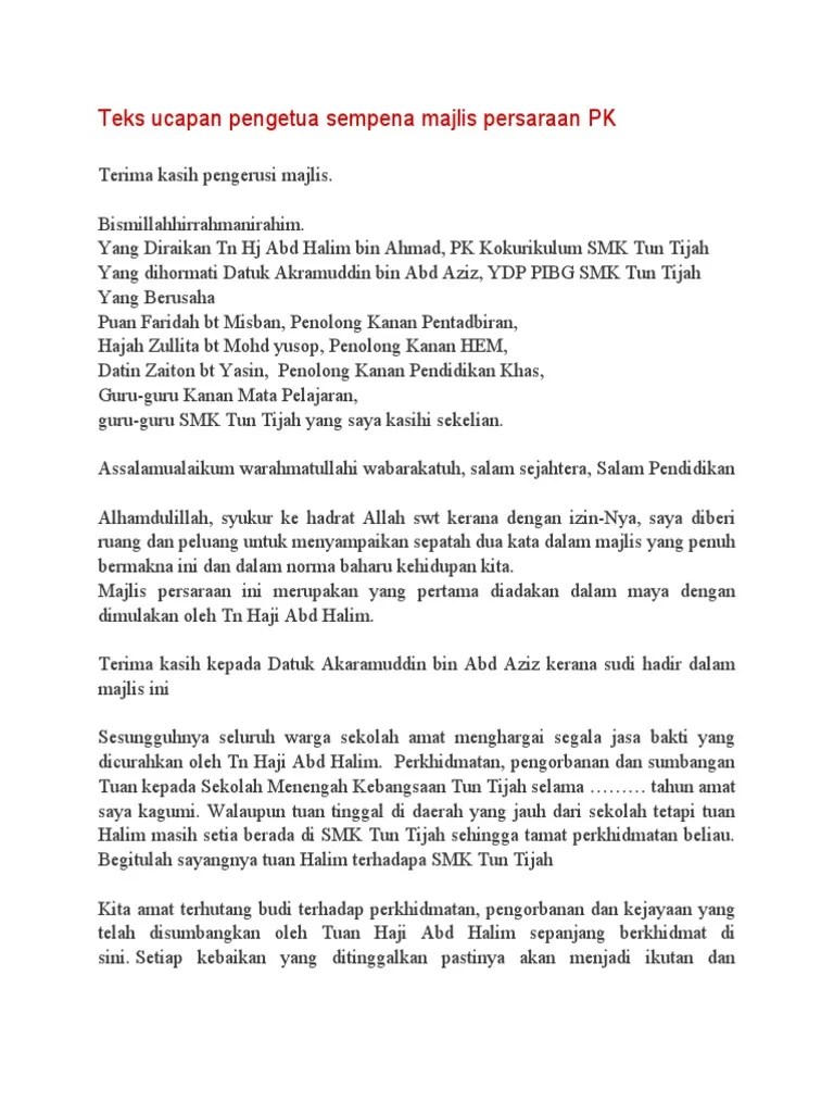 Hamzah, ydp pibg en abdul ghafar b. Cth teks ucapan ketua murid sempena majlis pertukaran pengetua. Ucapan ydp pibg sempena persaraan guru besar. Teks ucapan untuk majlis persaraan guru appriciating and sent off teks ucapan pengetua. Teks ucapan untuk guru yang bersara di majlis · assalammualaikum warahmatullah hiwabarakatuh…. Kata mutiara bijak untuk guru dalam mengajar. Tidak ada perpisahan di antara kita. For more information and source see on this link. Kata mutiara islami tentang guru guru . Ucapan selamat bersara guru wa 08979910278 baju . Kata kata ucapan terima kasih untuk guru terbaru mutiara kata persaraan guru . Ucapan perpisahan persaraan archives 1001 ucapan.